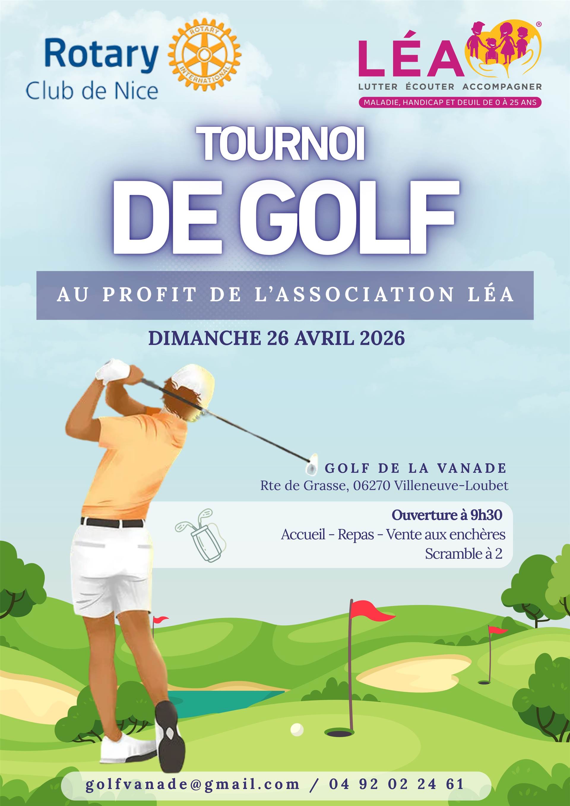 Le 26 Avril à 10h00, Venez nous rejoindre pour le Traditionnel Tournoi de Golf du Rotary Club de Nice